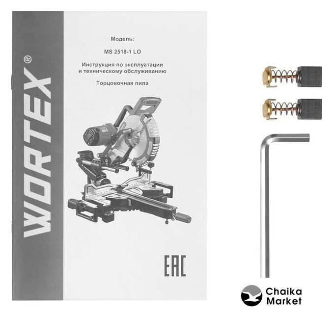 | Комплектация | - Пила торцовочная с пильным диском - 1 шт.- Мешок-пылесборник - 1 шт.- Шестигранный ключ - 1 шт.- Струбцина - 1 шт.- Комплект угольных щеток - 1 шт.- Инструкция по эксплуатации - 1 шт. |