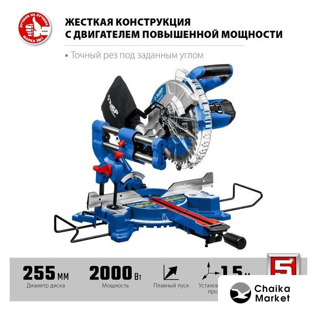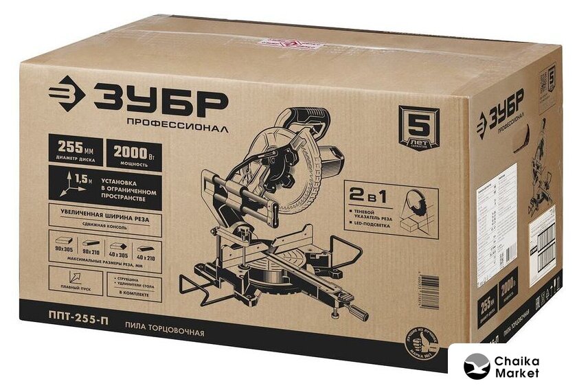 торцовочная, 2000 Вт, питание: сеть, диаметр диска: 255 мм, 5300 об/мин