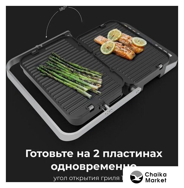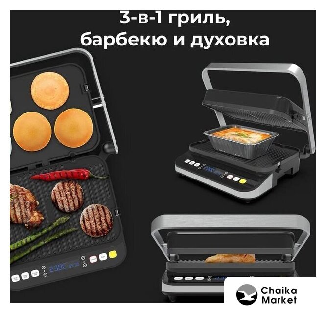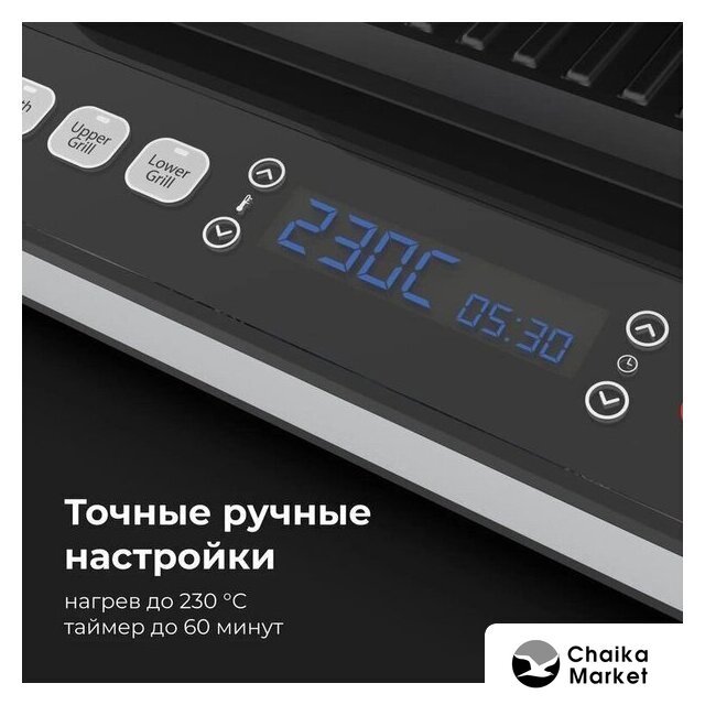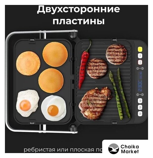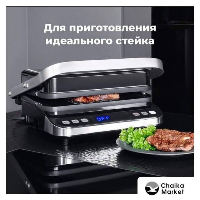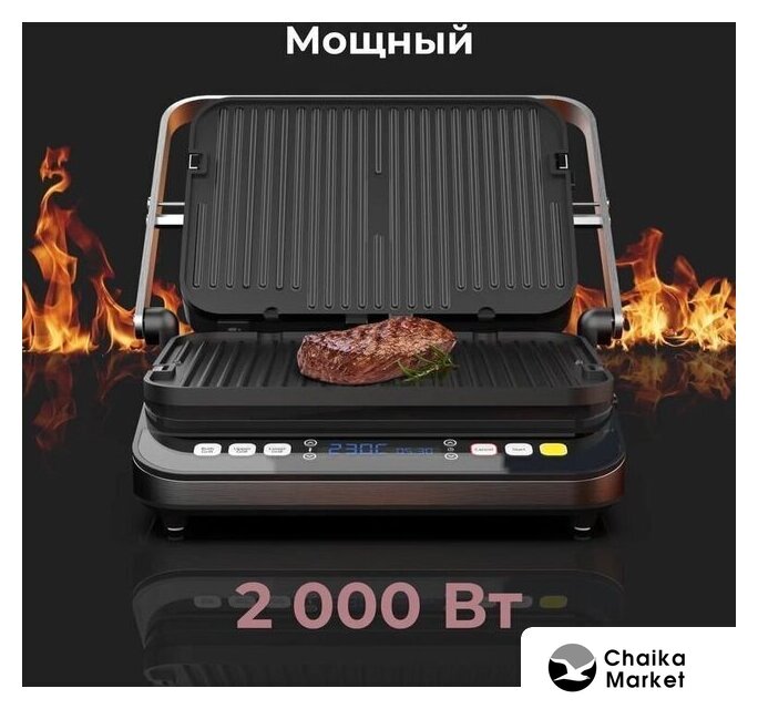 2200 Вт, универсальный, двухсторонний (гриль-пресс), габариты 355x445 мм, рабочая поверхность 370x230 мм