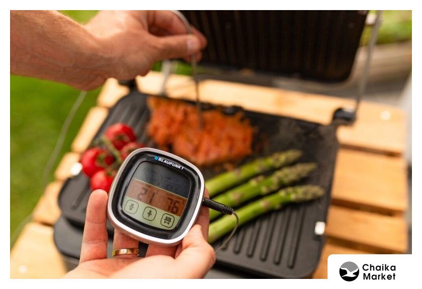 Комплектация | Электрогриль со съемными двусторонними нагревательными пластинами: гладкие и ребристые.Дополнительный комплект пластин для приготовления вафель, термометр для мяса |