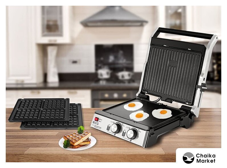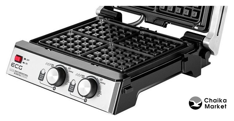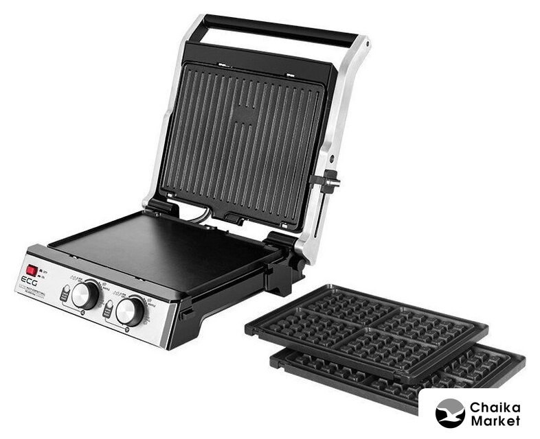 | Комплектация | рифленые и плоские съемные панели; комплект панелей для приготовления вафель; съемный поддон для сбора жира |