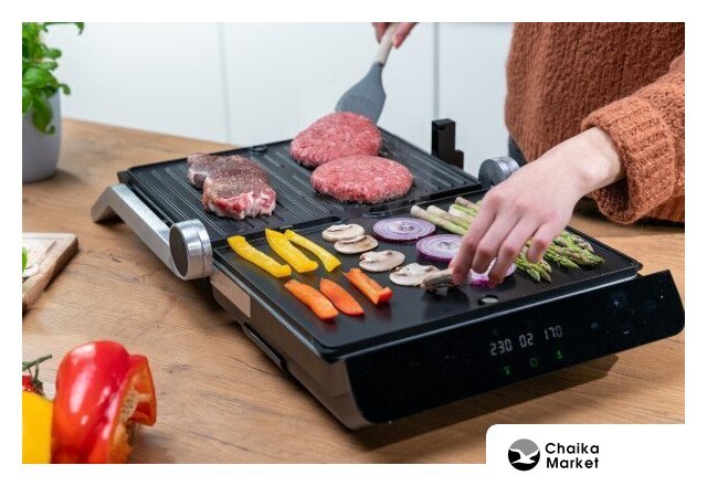 2000 Вт, универсальный, двухсторонний (гриль-пресс), габариты 315x365 мм, рабочая поверхность 290x230 мм
