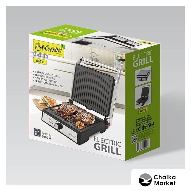 2300 Вт, открытый (барбекю), контактный односторонний, рабочая поверхность 440x250 мм