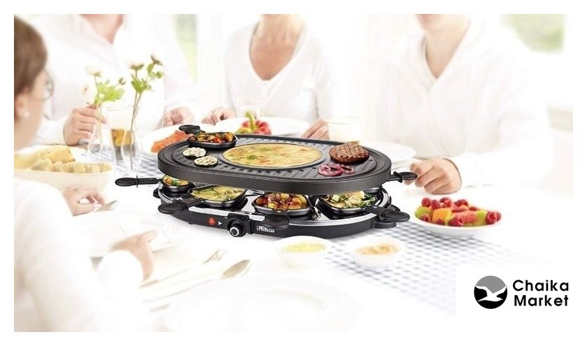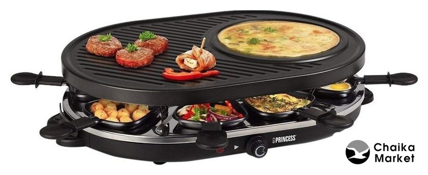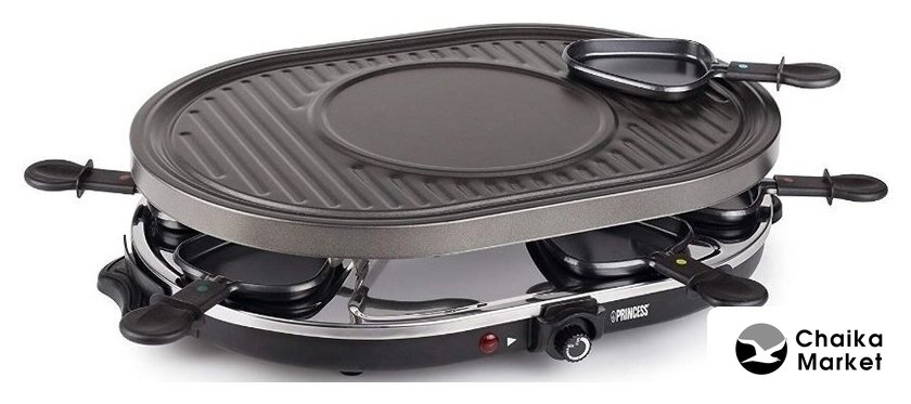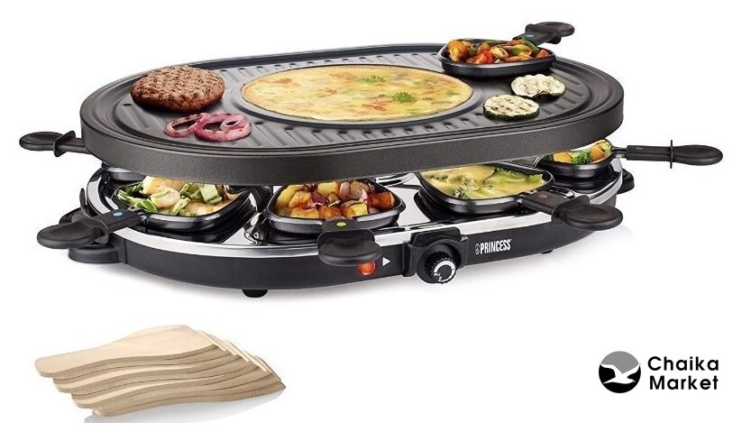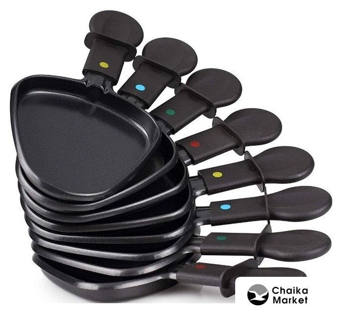 | Комплектация | - 1 съемная панель- 8 противней для раклета- 8 деревянных лопаток |