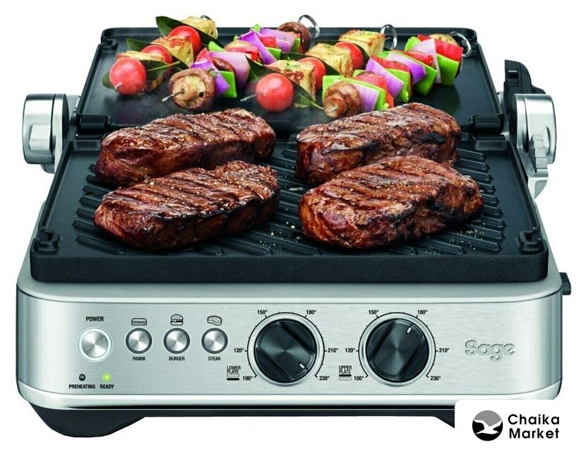 2000 Вт, универсальный, двухсторонний (гриль-пресс), габариты 345x430 мм, рабочая поверхность 340x240 мм