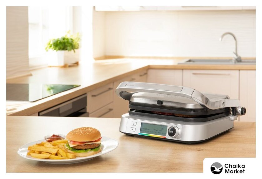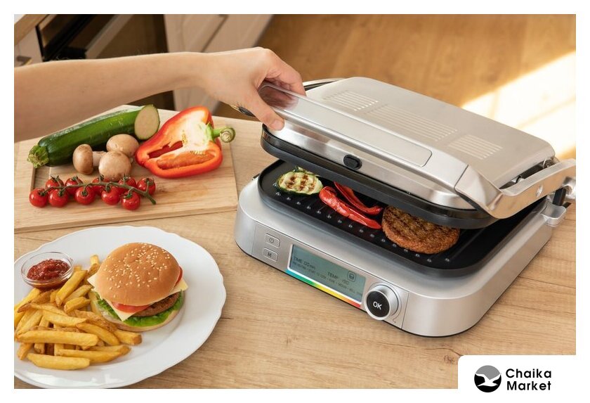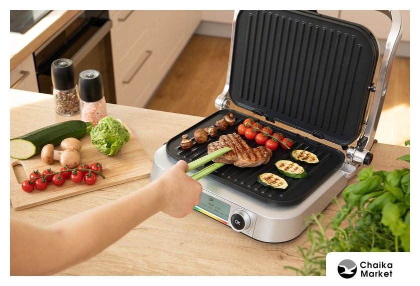 2100 Вт, универсальный, двухсторонний (гриль-пресс), габариты 320x380 мм, рабочая поверхность 300x250 мм