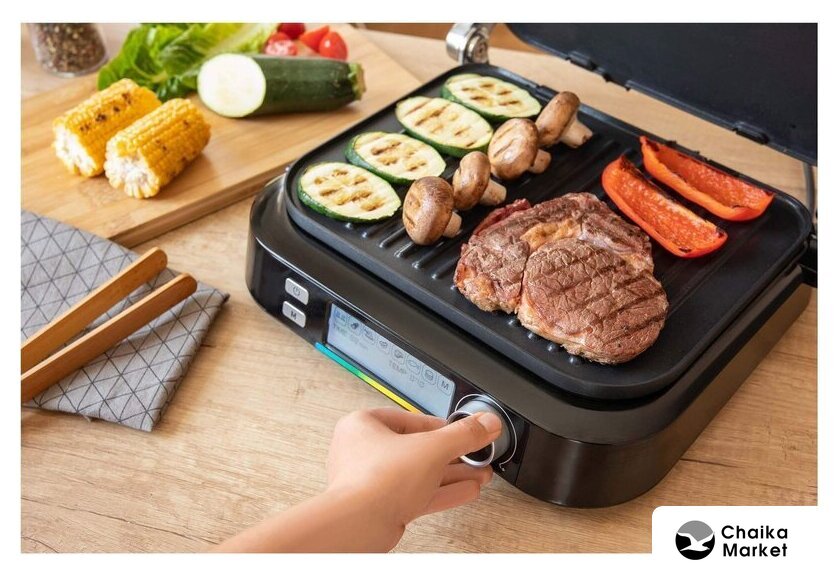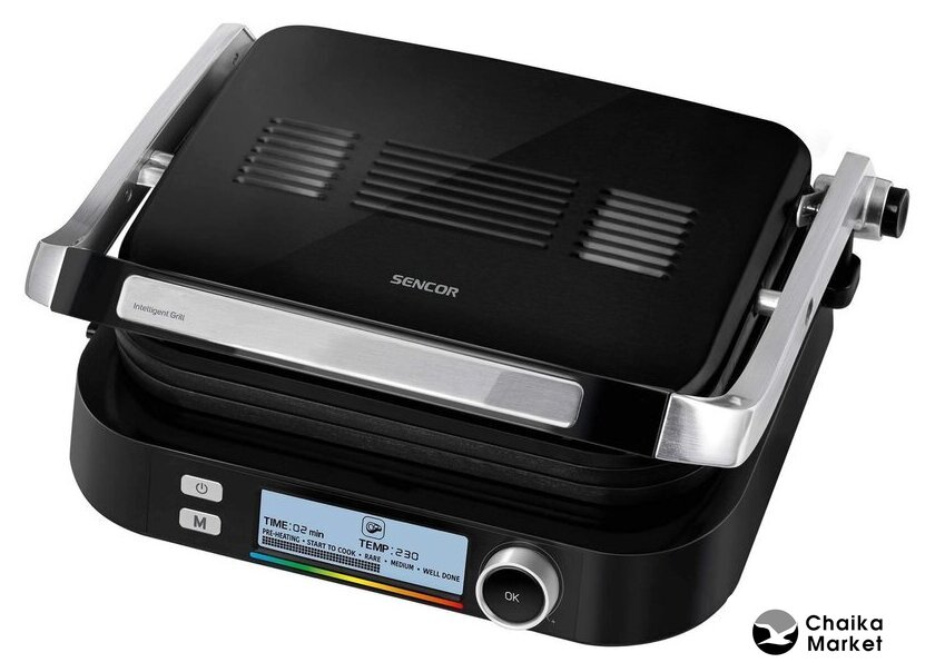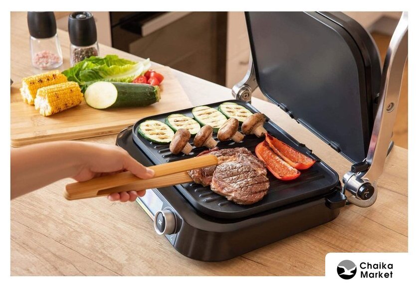 2200 Вт, универсальный, двухсторонний (гриль-пресс), габариты 355x445 мм, рабочая поверхность 370x230 мм