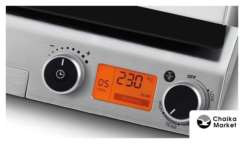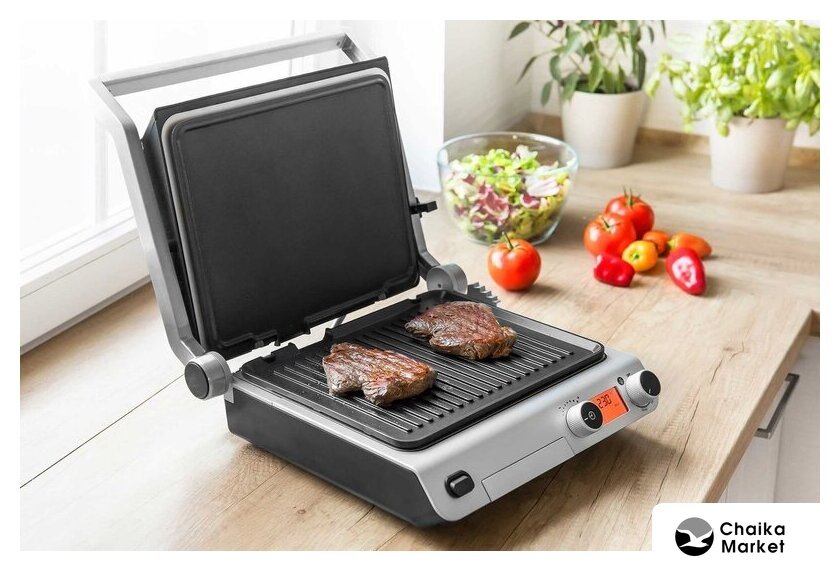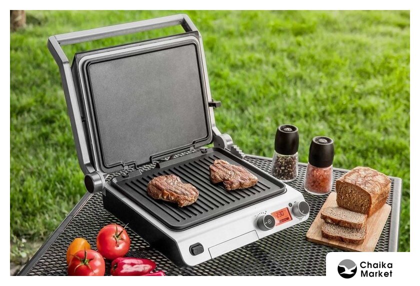2200 Вт, универсальный, двухсторонний (гриль-пресс), габариты 328x323 мм, рабочая поверхность 290x230 мм
