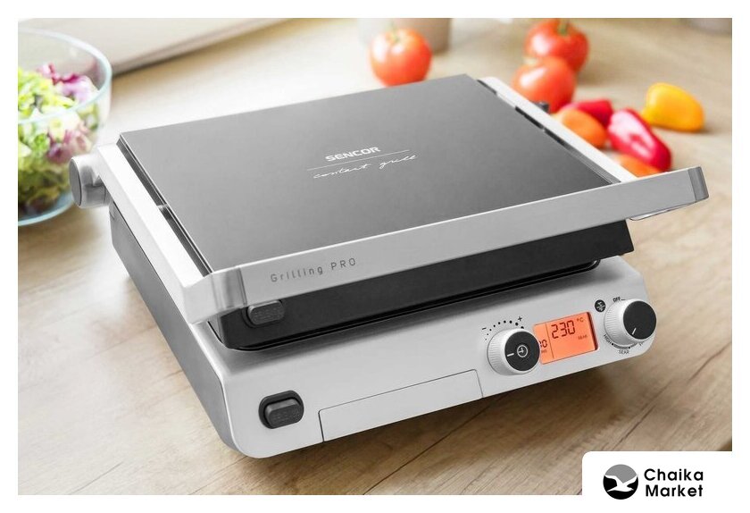 2000 Вт, закрытый, двухсторонний (гриль-пресс), габариты 360x330 мм, рабочая поверхность 230x290 мм