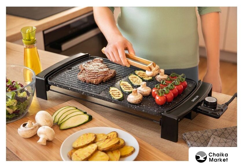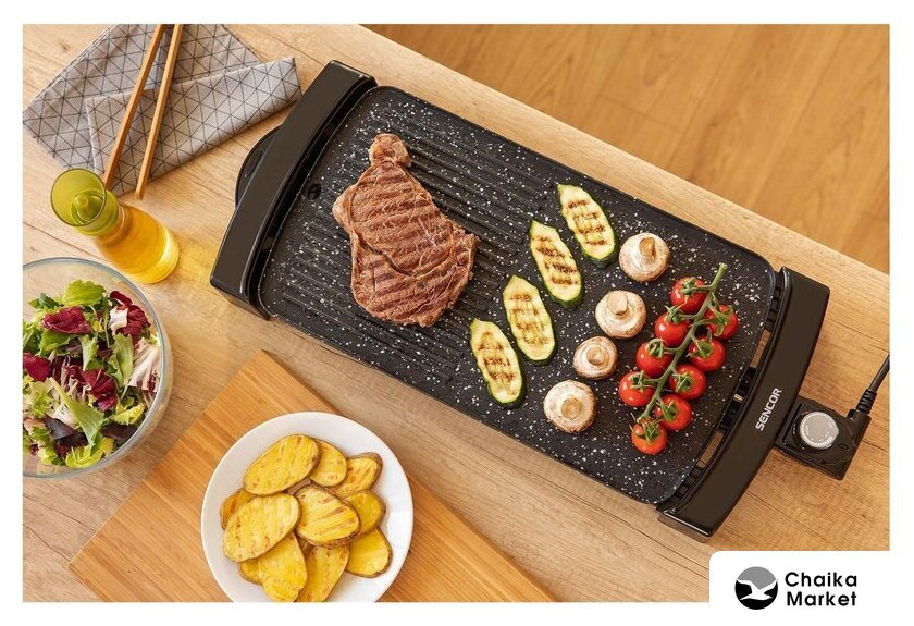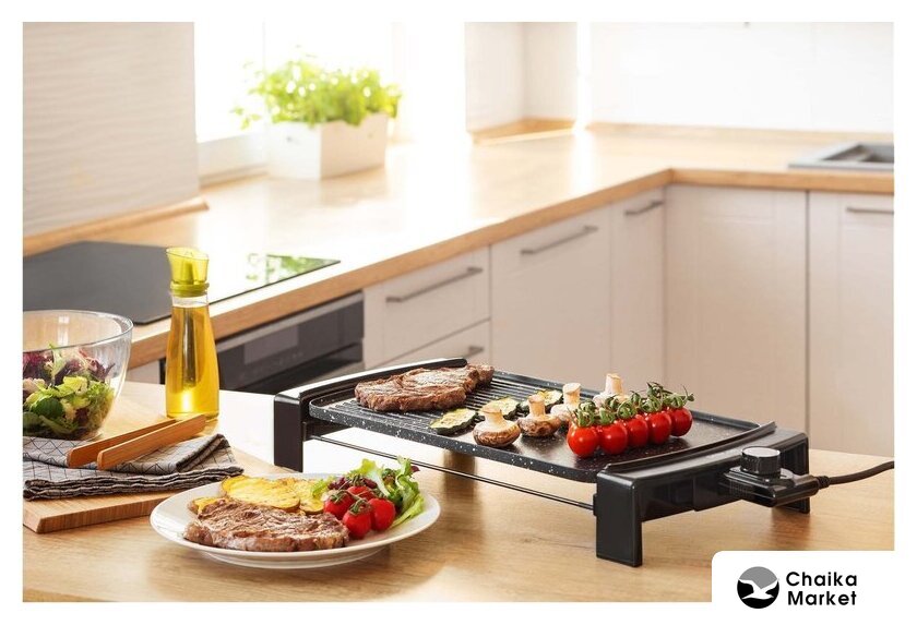 Комплектация | Электрогриль с комбинированной плитой для гриля: плоская и ребристая |