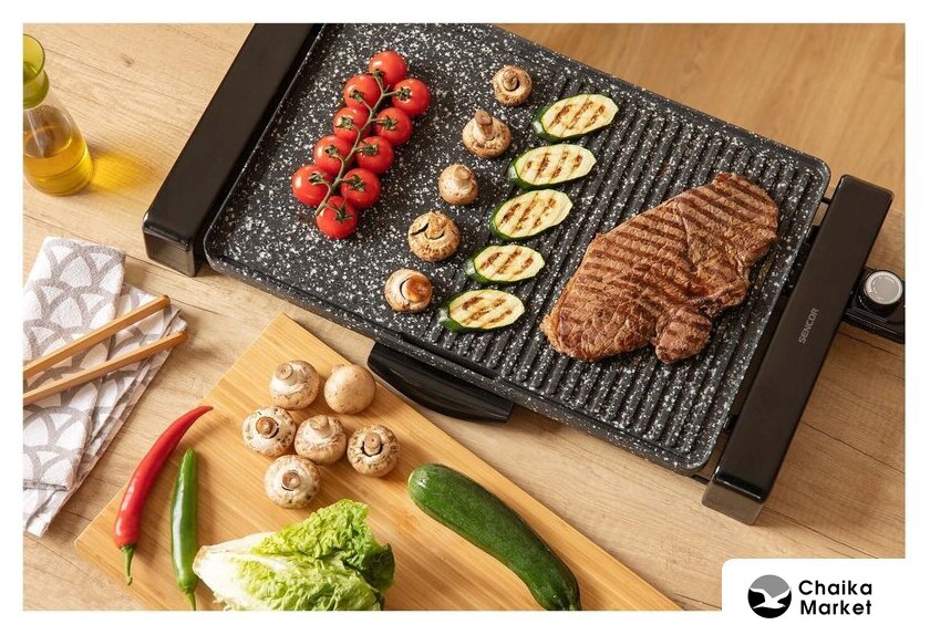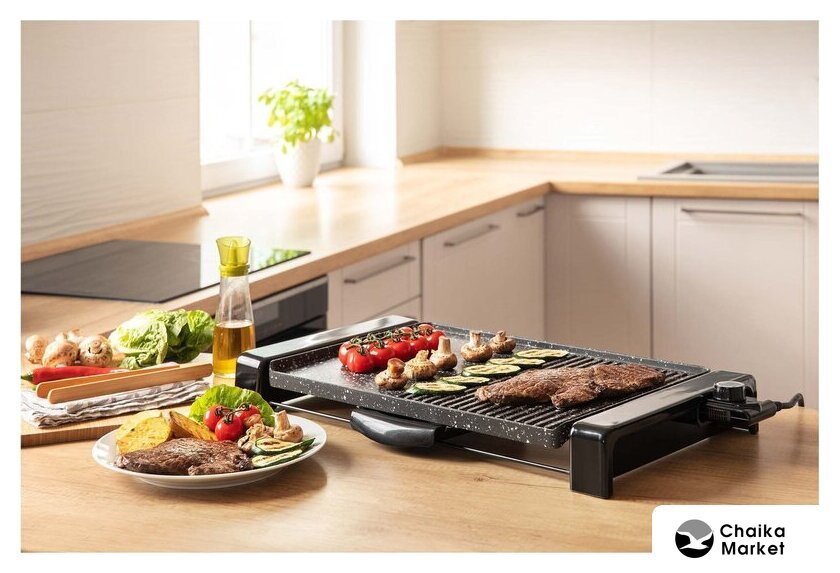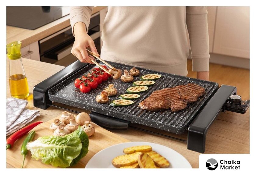 Комплектация | Электрогриль с комбинированной плитой для гриля: плоская и ребристая |