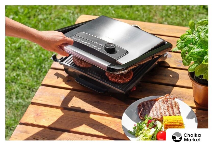 Комплектация | Корпус электрического гриля2 поверхности грилясъемный поддон для сбора жира и сока |