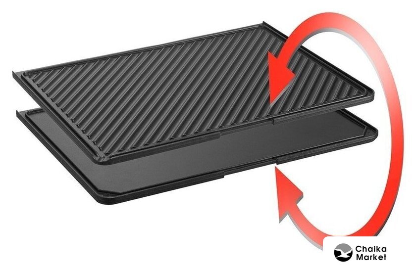 универсальный, двухсторонний (гриль-пресс), габариты 375x315 мм, рабочая поверхность 340x230 мм