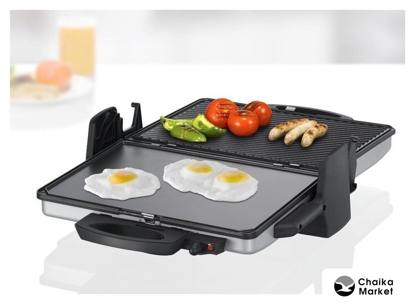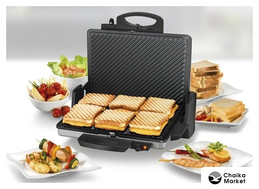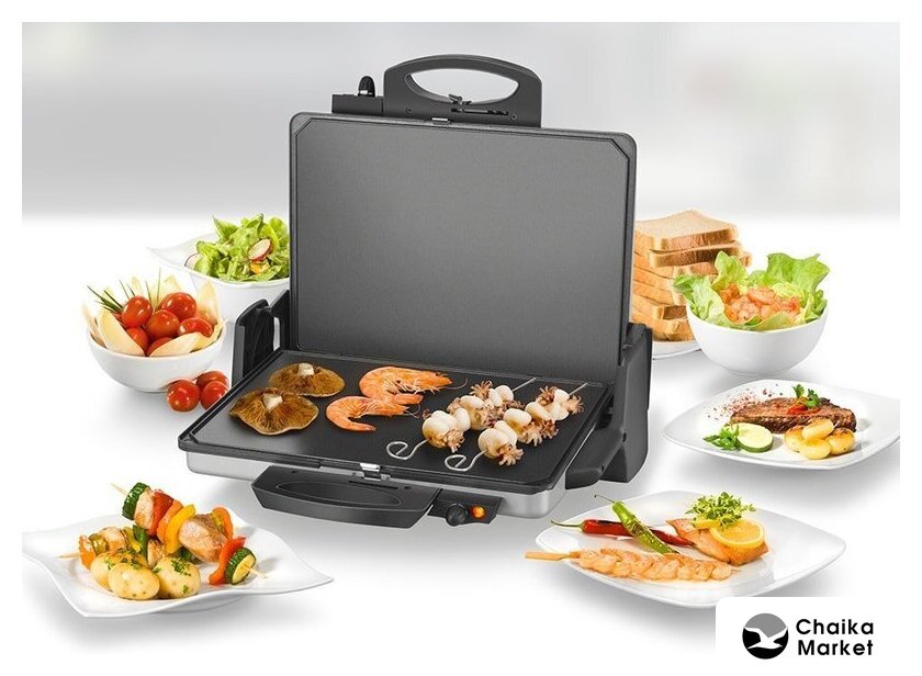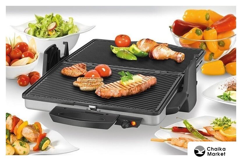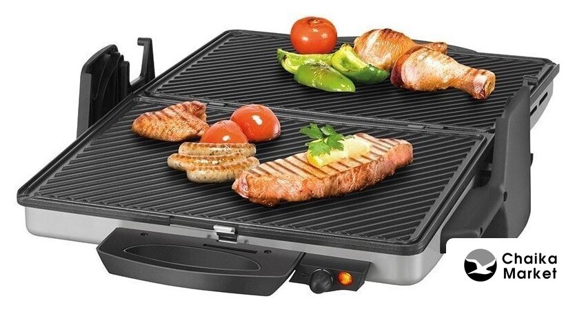 1300 Вт, открытый (барбекю), контактный односторонний, габариты 530x250 мм, рабочая поверхность 360x230 мм