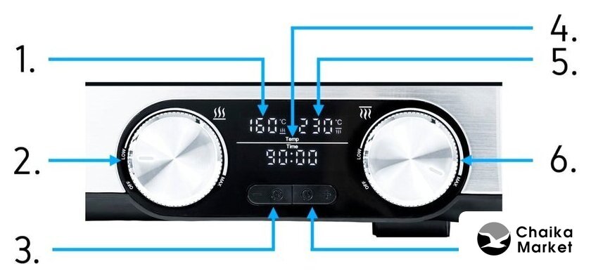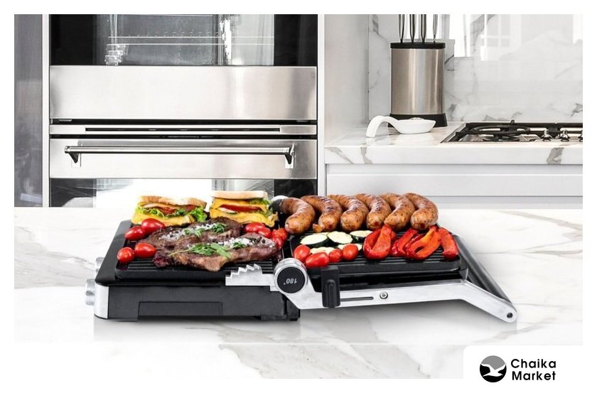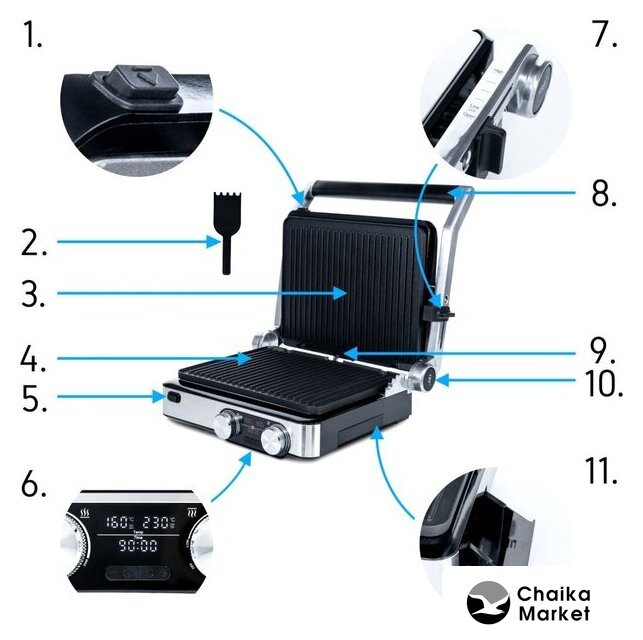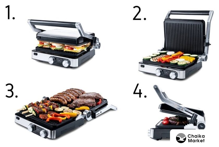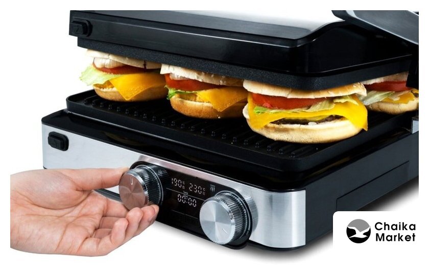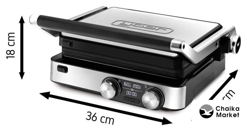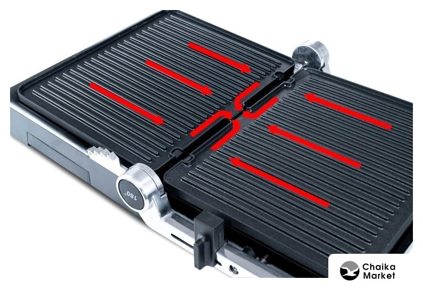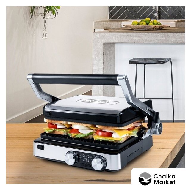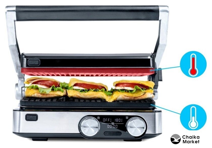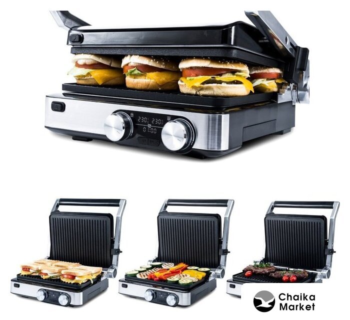 2000 Вт, универсальный, двухсторонний (гриль-пресс), габариты 380x370 мм, рабочая поверхность 340x230 мм