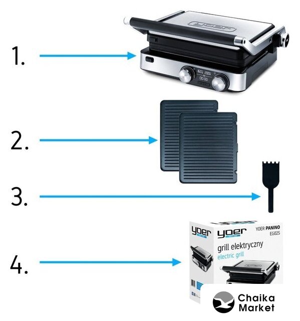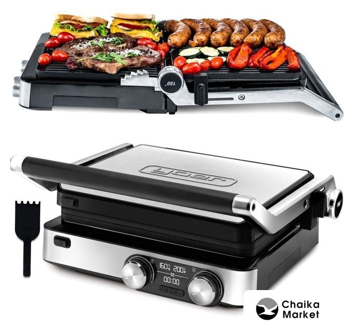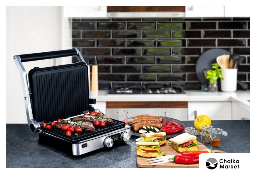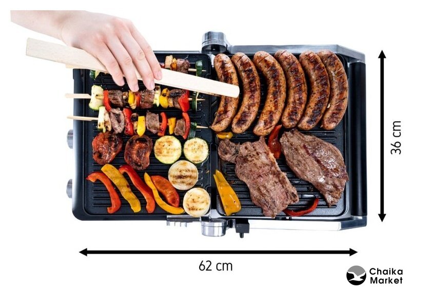 2200 Вт, открытый (барбекю), контактный односторонний, габариты 395x527 мм, рабочая поверхность 445x260 мм