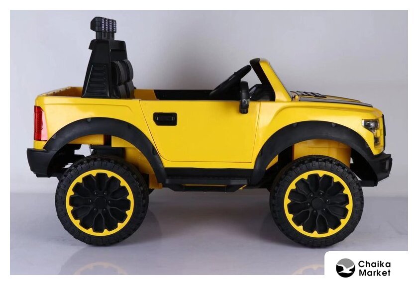 внедорожник, количество мест: 1, для детей 3–8 лет (до 30 кг), двигатель 12V, 2 скорости, аккумулятор 7 А·ч, воспроизведение музыки: AUX вход 3.5 мм/USB Flash