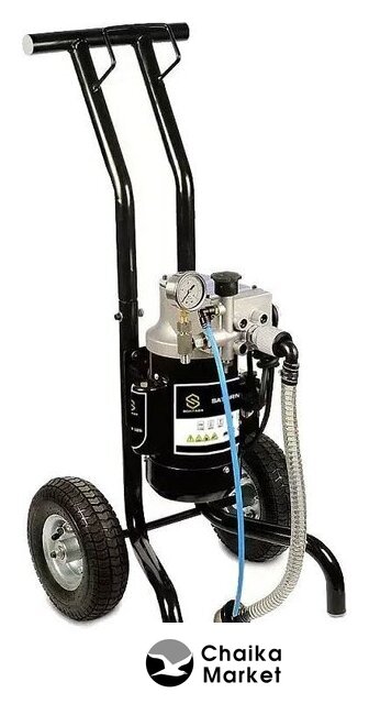 | Комплект поставки | - агрегат окрасочный высокого давления на тележке и с заборным шлангом для краски (комплект);- шланг высокого давления для краски – 15 м.;- безвоздушный краскопульт в комплекте с фильтром в ручке и соплодержателем;- сопло реверсивное безвоздушное;- инструкция. |