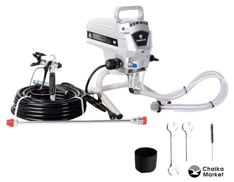 Комплект поставки | - Окрасочный аппарат – 1 шт- Окрасочный пистолет – 1 шт - Шланг для подачи краски под давлением – 1 шт - Гаечный ключ – 2 шт - Стакан для краски – 1 шт - Удлинитель - 1 шт - Щетка – 1 шт - Руководство по эксплуатации – 1 шт |
