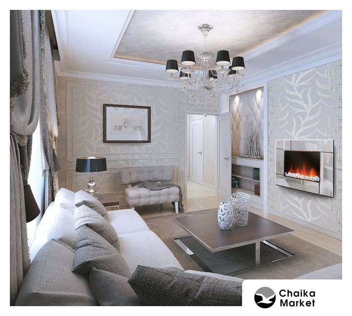 электрокамин, настенный, современный стиль, 1800 Вт, имитация 2D (LED), пульт