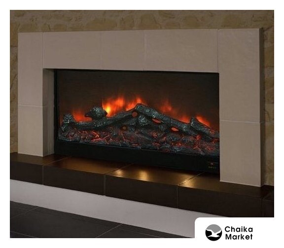 электрокамин, встраиваемый, современный стиль, имитация 2D (проекционная), термостат, пульт