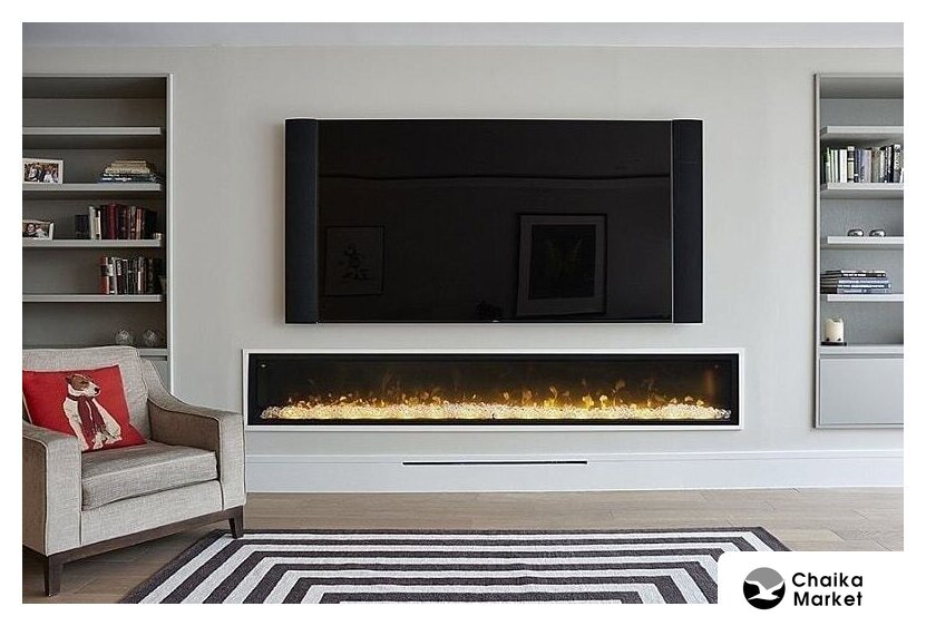 электрокамин, встраиваемый, современный стиль, имитация 2D (проекционная), термостат, пульт