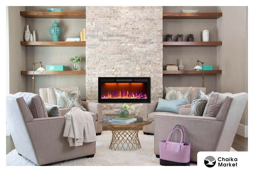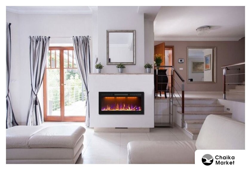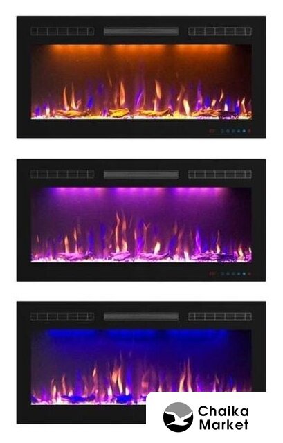 электрокамин, встраиваемый, современный стиль, 2000 Вт, имитация 3D, термостат, пульт
