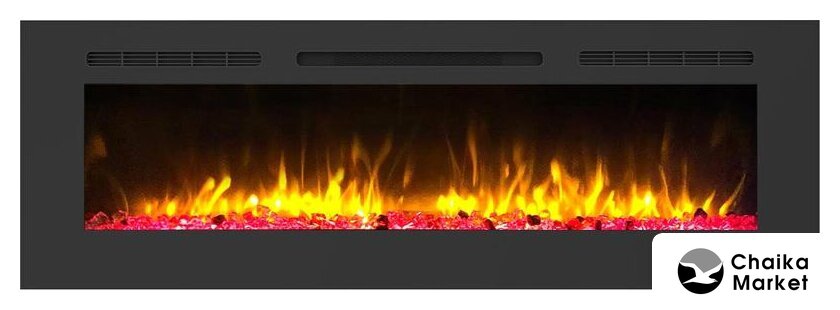 электрокамин, встраиваемый, современный стиль, имитация 2D (проекционная), термостат, пульт