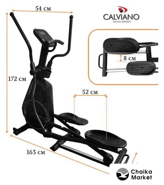 электромагнитная нагрузка, маховик 7 кг, длина шага 42 см, масса пользователя до 130 кг