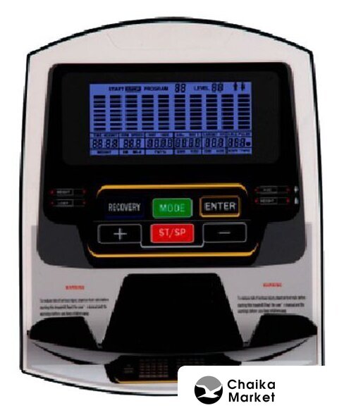 Показания на дисплее | время, расстояние, количество сожженных калорий, скорость, пульс, жироанализатор BodyFat, фитнес-тест Recovery |