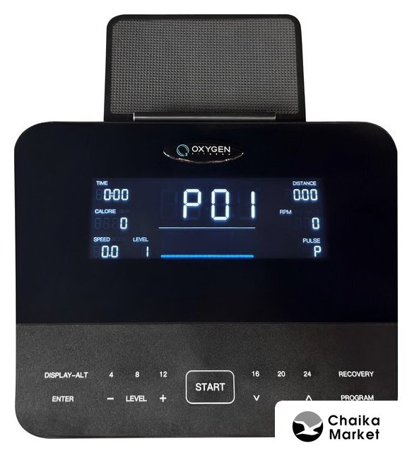 Показания на дисплее | время, скорость, дистанция, калории, пульс, нагрузка, статус Bluetooth, количество оборотов в минуту, жироанализатор, программный профиль |