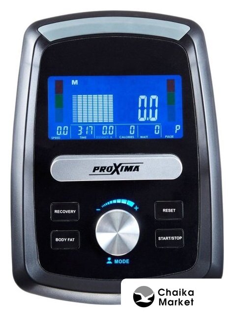 Отображаемая информация | время тренировки, пройденная дистанция, текущая скорость, расход калорий, пульс, величина нагрузки, расход калорий в час, скорость вращения педалей |
