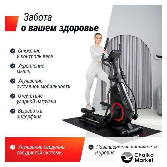 электромагнитная нагрузка, маховик 8 кг, длина шага 51 см, масса пользователя до 150 кг