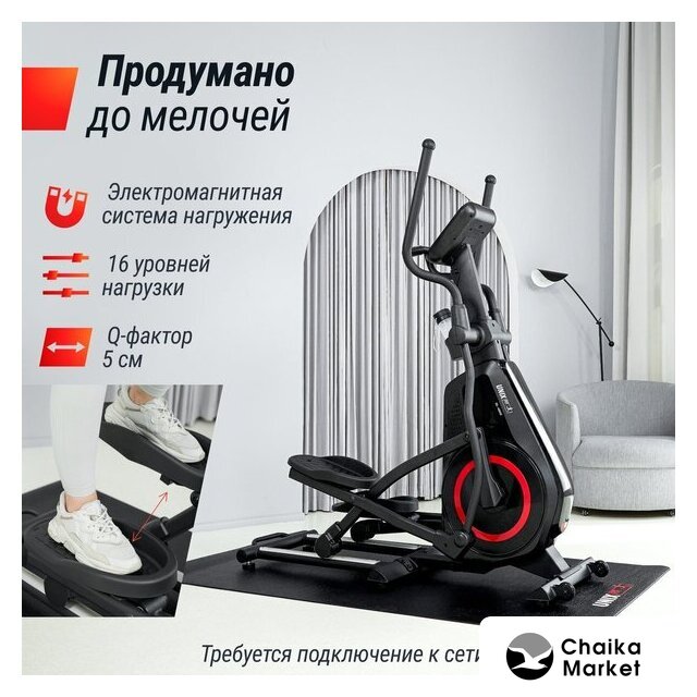 электромагнитная нагрузка, маховик 11 кг, длина шага 48 см, масса пользователя до 135 кг