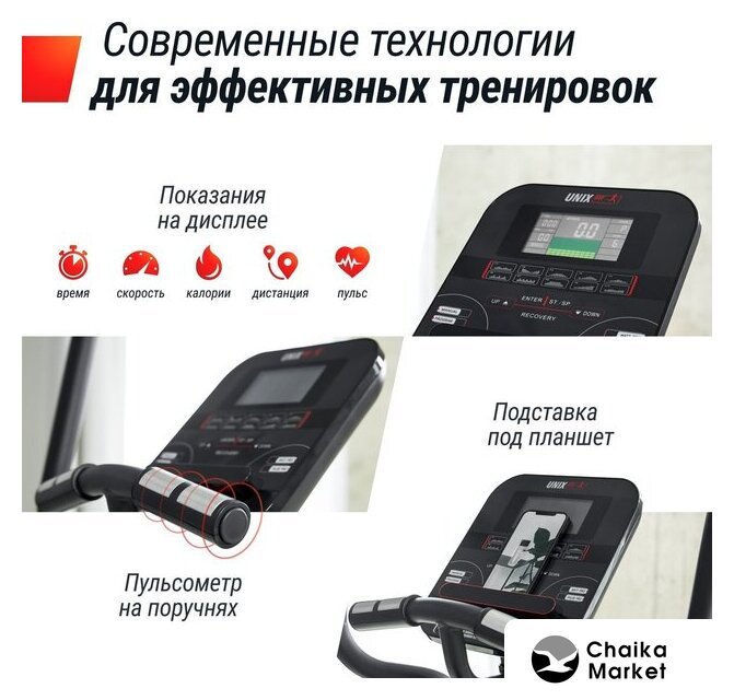 Отображаемая информация | время тренировки, пройденная дистанция, текущая скорость, пульс, величина нагрузки |