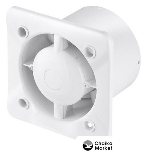 накладной осевой вентилятор, потолочная/настенная установка, диаметр: 10 см, производительность: 95 куб.м/ч, 8 Вт, отдельная кнопка или выключатель света + таймер (задержка отключения) + датчик влажности, белый