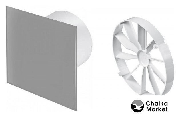 накладной осевой вентилятор, потолочная/настенная установка, диаметр: 10 см, производительность: 85 куб.м/ч, 8 Вт, отдельная кнопка или выключатель света + таймер (задержка отключения), серебристый