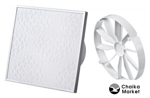 накладной осевой вентилятор, потолочная/настенная установка, диаметр: 15 см, производительность: 285 куб.м/ч, 25 Вт, отдельная кнопка или выключатель света, белый