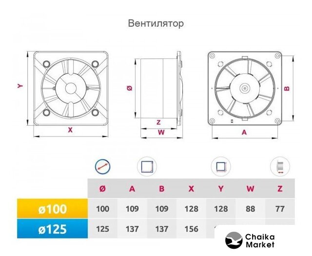 Установочный диаметр воздуховода | 12.5 см |