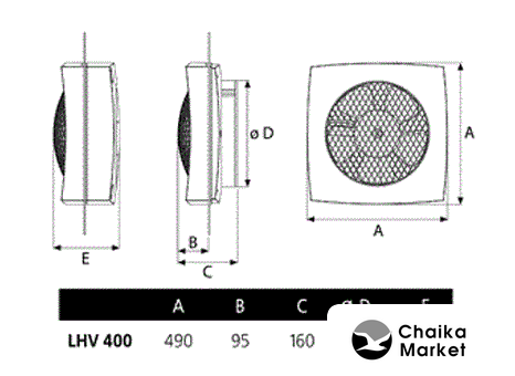канальный осевой вентилятор, внутриканальная установка, диаметр: 20 см, производительность: 910 куб.м/ч, 102 Вт, отдельная кнопка или выключатель света, белый