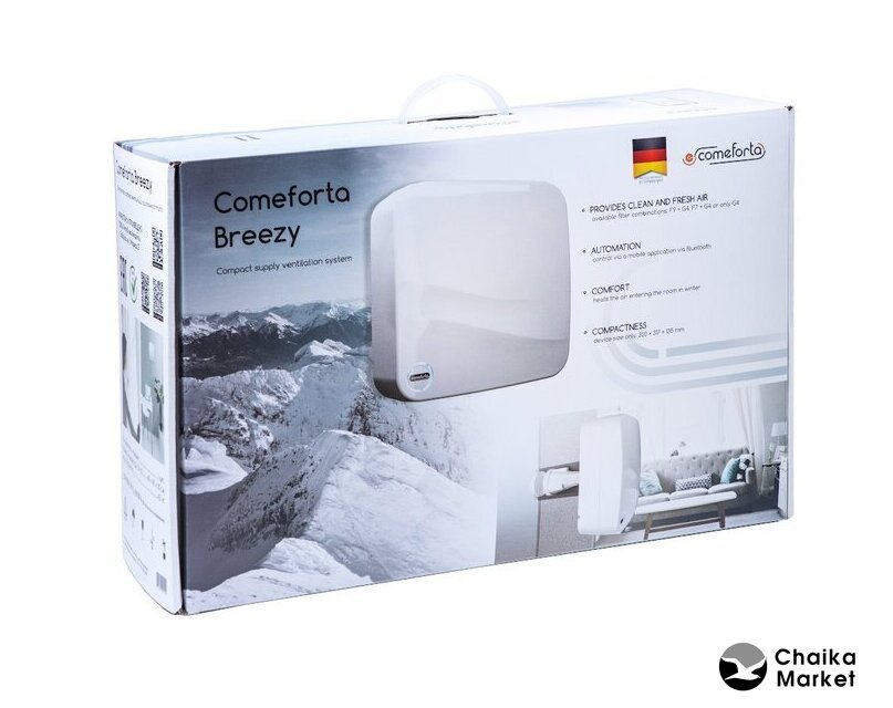 накладной проветриватель с рекуперацией, настенная установка, производительность: 135 куб.м/ч, 50 Вт, пульт ДУ + управление с помощью смартфона, белый