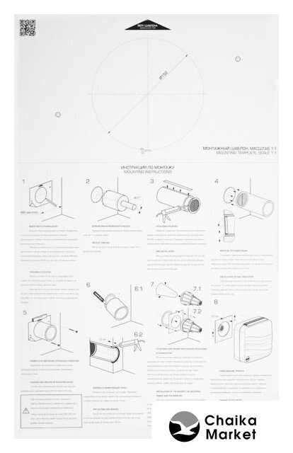 накладной проветриватель с рекуперацией, настенная установка, производительность: 135 куб.м/ч, 50 Вт, пульт ДУ + управление с помощью смартфона, черный