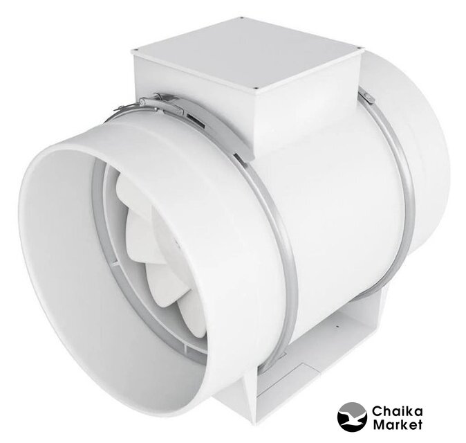 канальный осевой вентилятор, внутриканальная установка, диаметр: 16 см, производительность: 560 куб.м/ч, 45 Вт, отдельная кнопка или выключатель света, белый