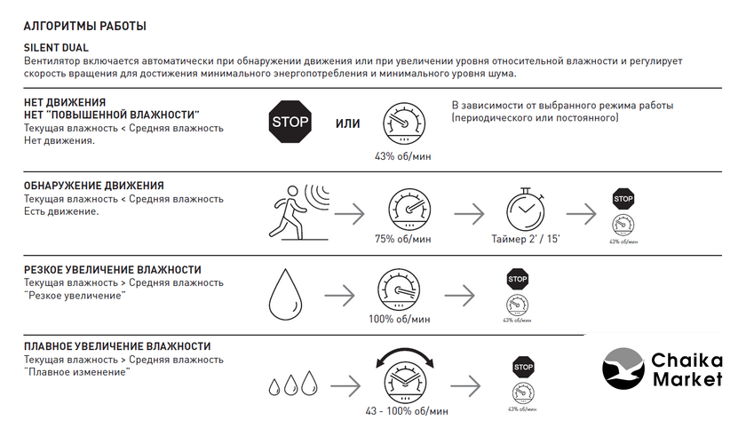 накладной осевой вентилятор, потолочная/настенная установка, диаметр: 10 см, производительность: 85 куб.м/ч, 8 Вт, отдельная кнопка + выключатель света + таймер (задержка отключения) + датчик влажности, белый