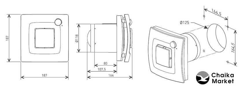 накладной осевой вентилятор, потолочная/настенная установка, диаметр: 9.8 см, производительность: 115 куб.м/ч, 8 Вт, отдельная кнопка + выключатель света + таймер (задержка отключения) + датчик влажности, белый