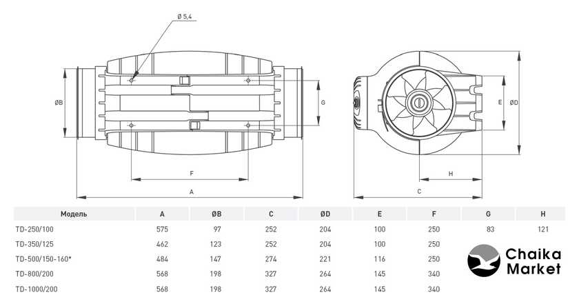 | Установочный диаметр воздуходува | 10 см (12.5 - переходники в комплекте) |
