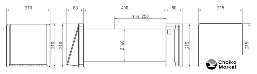 накладной проветриватель с рекуперацией, настенная установка, производительность: 135 куб.м/ч, 50 Вт, пульт ДУ + управление с помощью смартфона, черный