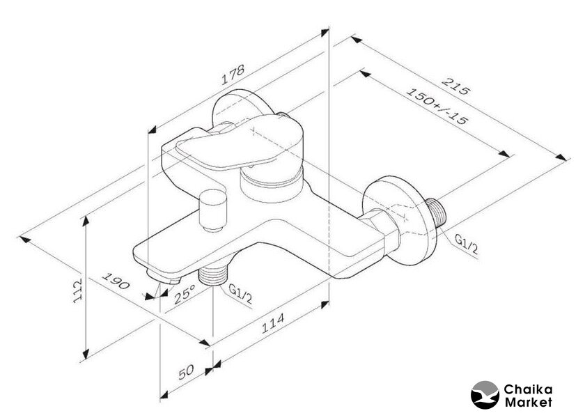 однорычажный смеситель для ванны и душа, монтаж на стену
