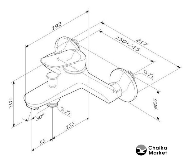 однорычажный смеситель для ванны и душа, монтаж на стену