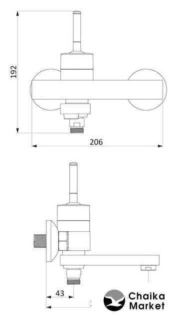 однорычажный смеситель для ванны и душа, монтаж на ванну или полку